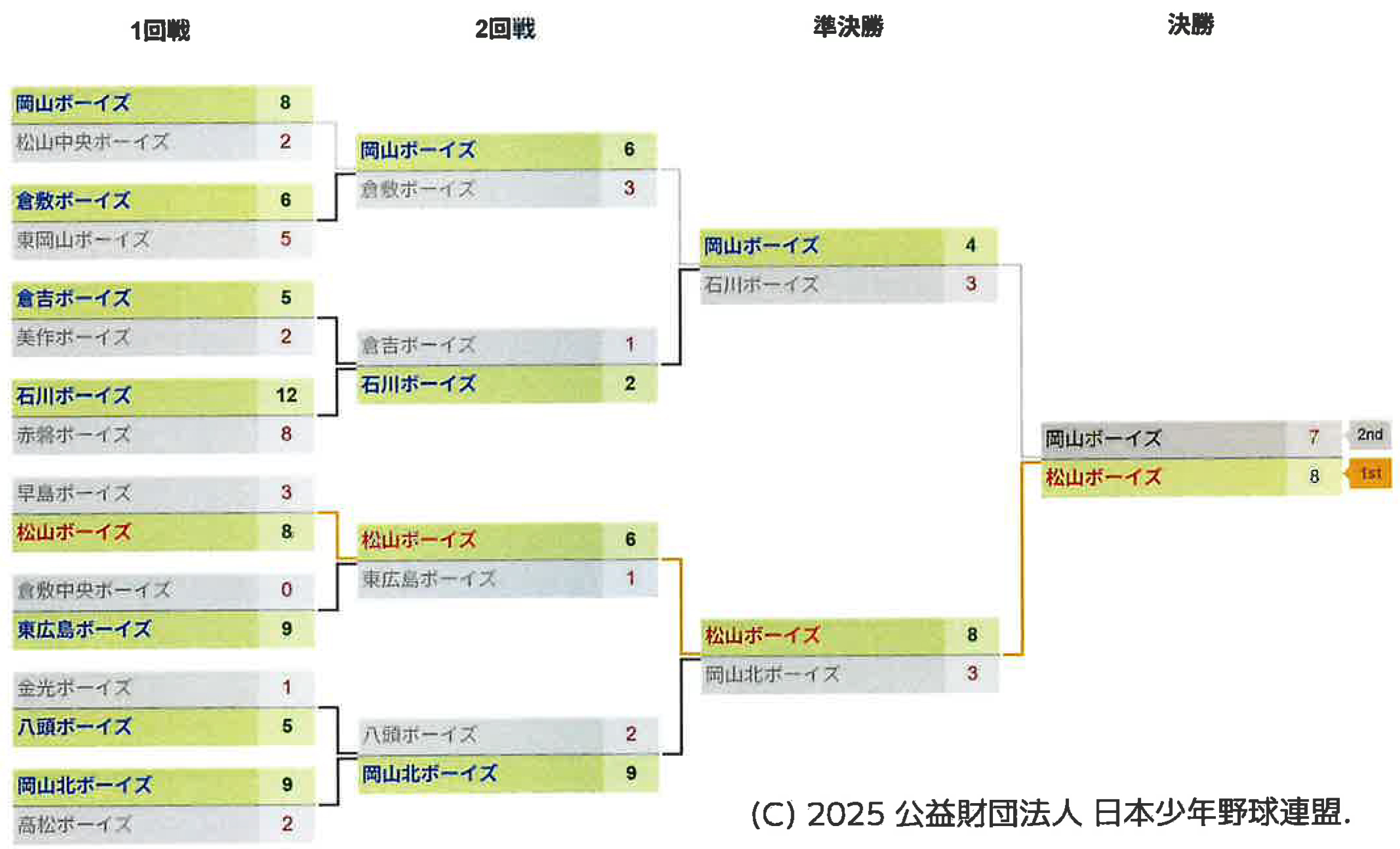 ■ Home > 大会情報一覧 > 大会情報(2025年度)> 第15回岡山ボーイズ大会 レギュラーの部
